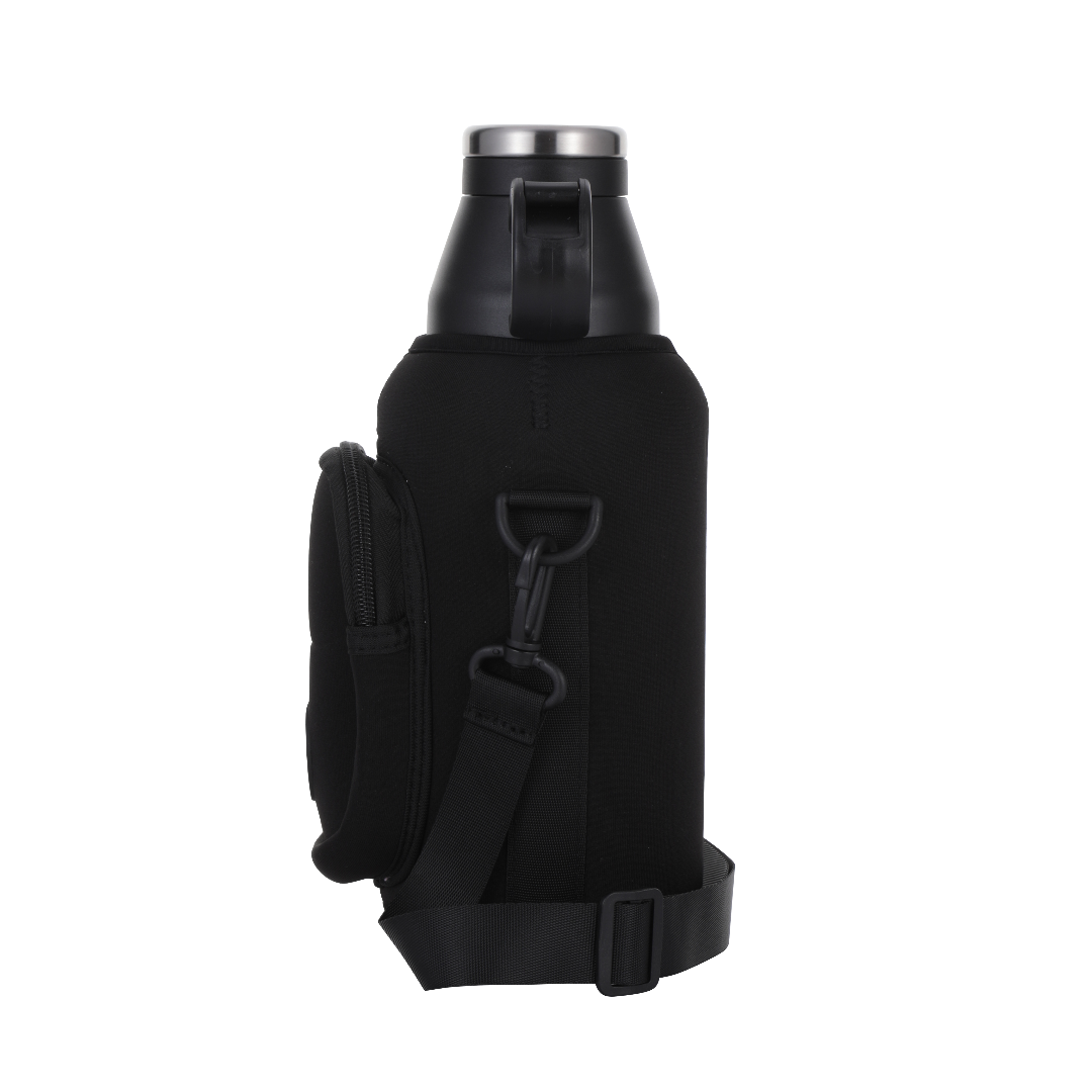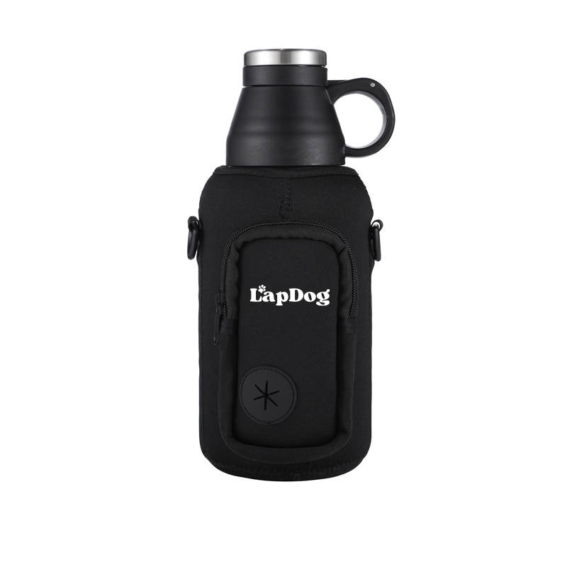 The bottle travel bag is a convenient neoprene carrier for your 3 in 1 water bottle. The straps are adjustable allowing you to wear it at your desired length over your shoulder, or like a sling across your body best suited to your comforts. The zipper pocket can hold poop bags, keys, and more. Makes every day walks and adventures with your lapdog, or carrying all of your things to work and the gym a breeze!
